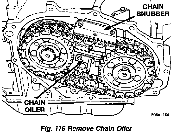 CAUTION: Be sure to reinstall the chain snubber and chain oiler when reassembling.