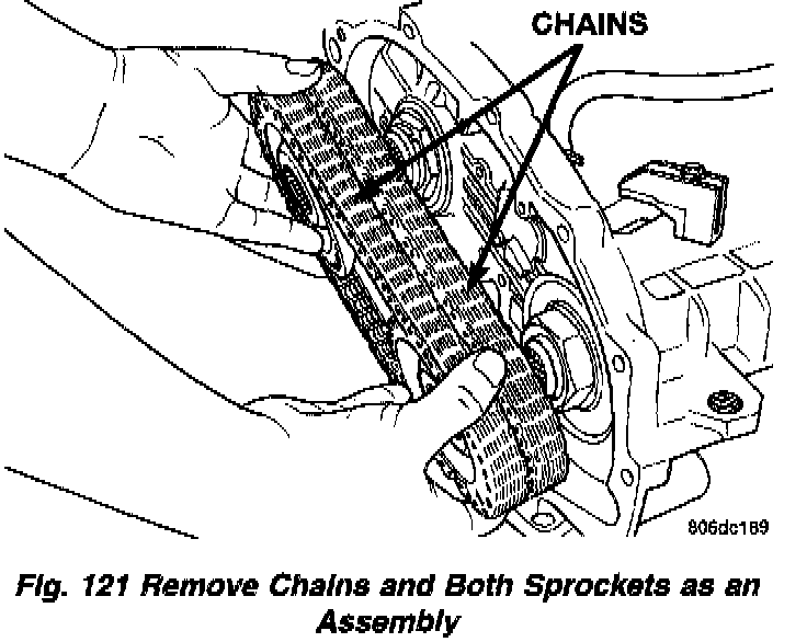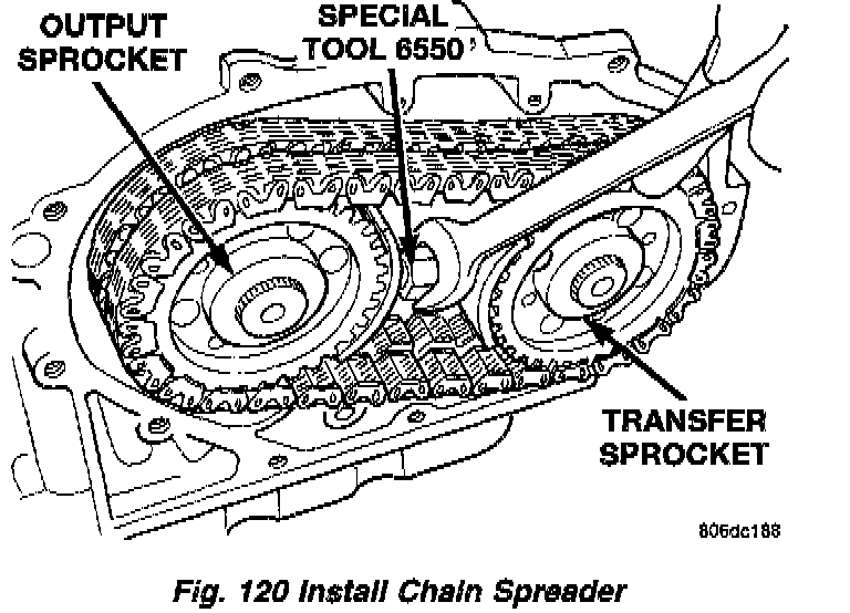 CAUTION: The chain sprockets have a slip fit onto the shafts. Apply only a slight amount of pressure to the chain spreader to release the chain pressure. If chain sprockets are not spread slightly, removal or installation will be difficult. Overspreading of the chain sprockets will also make sprocket removal difficult.