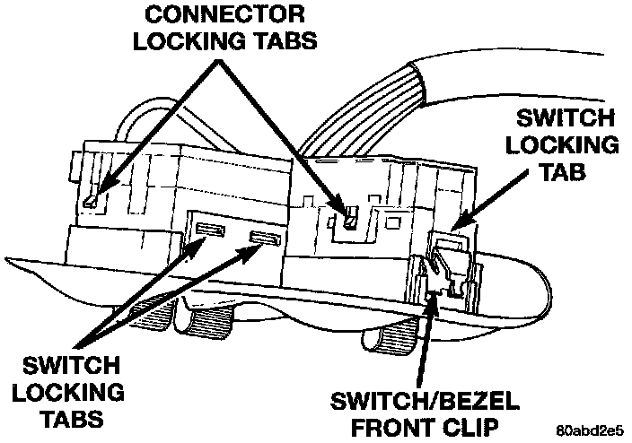 3. Using a trim stick (special tool # C-4755), place it underneath the front lip of the switch bezel and depress the front clip. Pry the switch bezel up to release it from the trim panel.