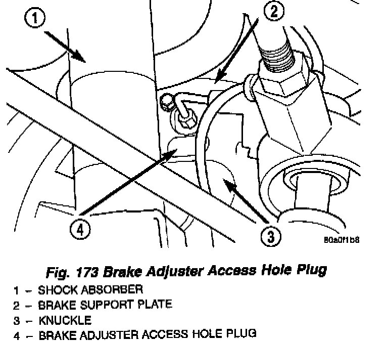 2. Remove the rubber plug from the brake adjuster access hole in the brake support plate.