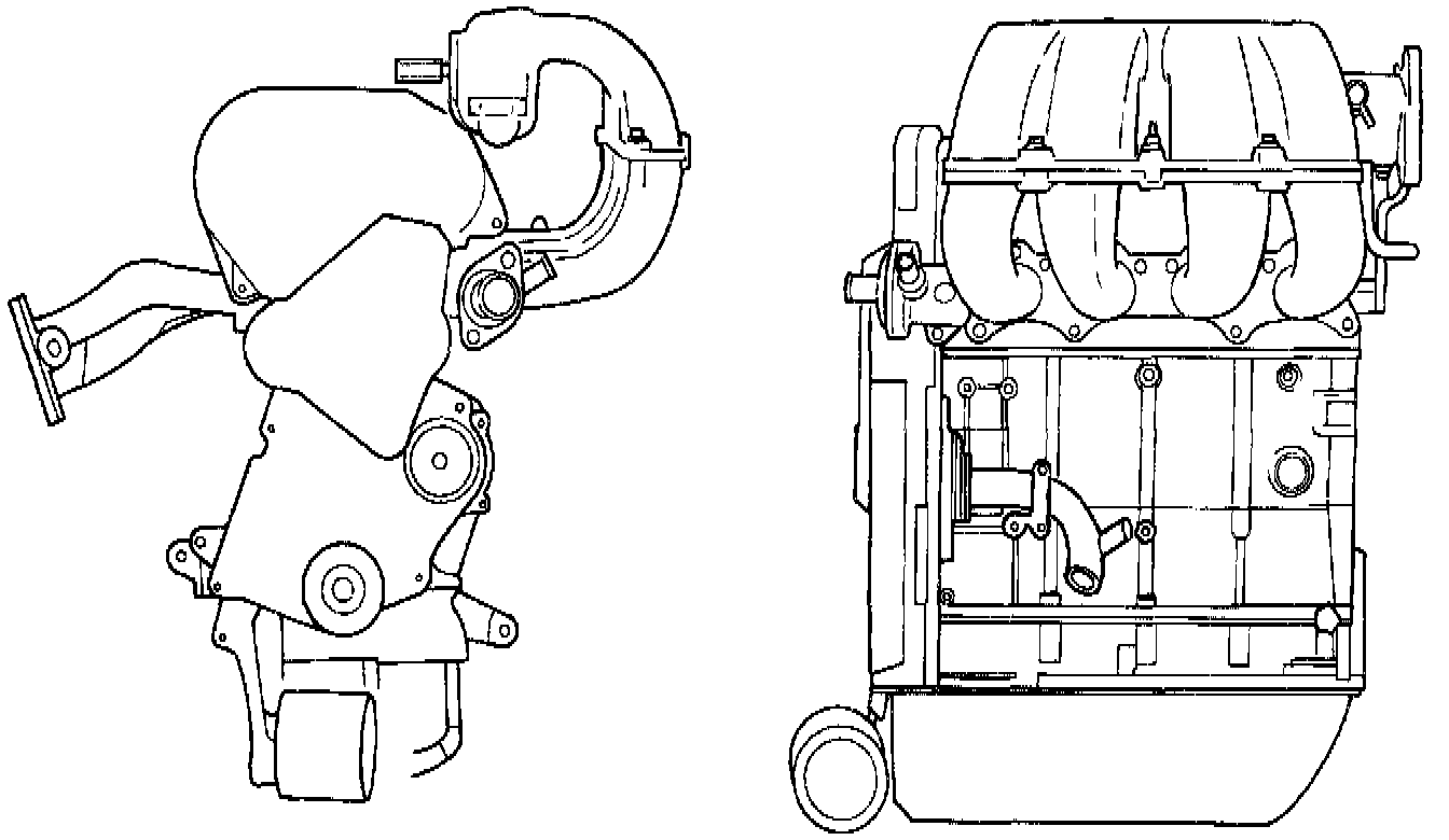 A closed deck design is used for cooling and weight reduction with water pump molded into the block. Nominal wall thickness is 4.5 mm. The bedplate incorporates main bearing caps. Rear seal retainer is integral with the block.