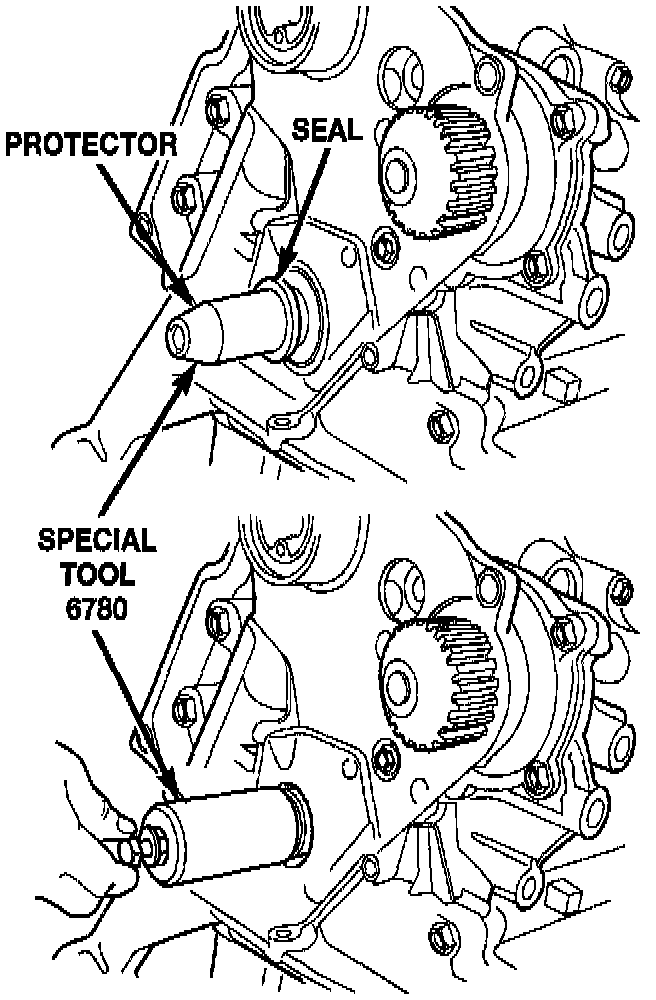 NOTE: Front crankshaft seal MUST be out of pump to align, or damage may result.