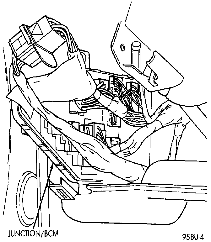 The Junction Block and Body Control Module (BCM) are attached to each other. After removal they can be separated. Junction Block and Body Control Module assemblies are located on the driver's side of the vehicle.