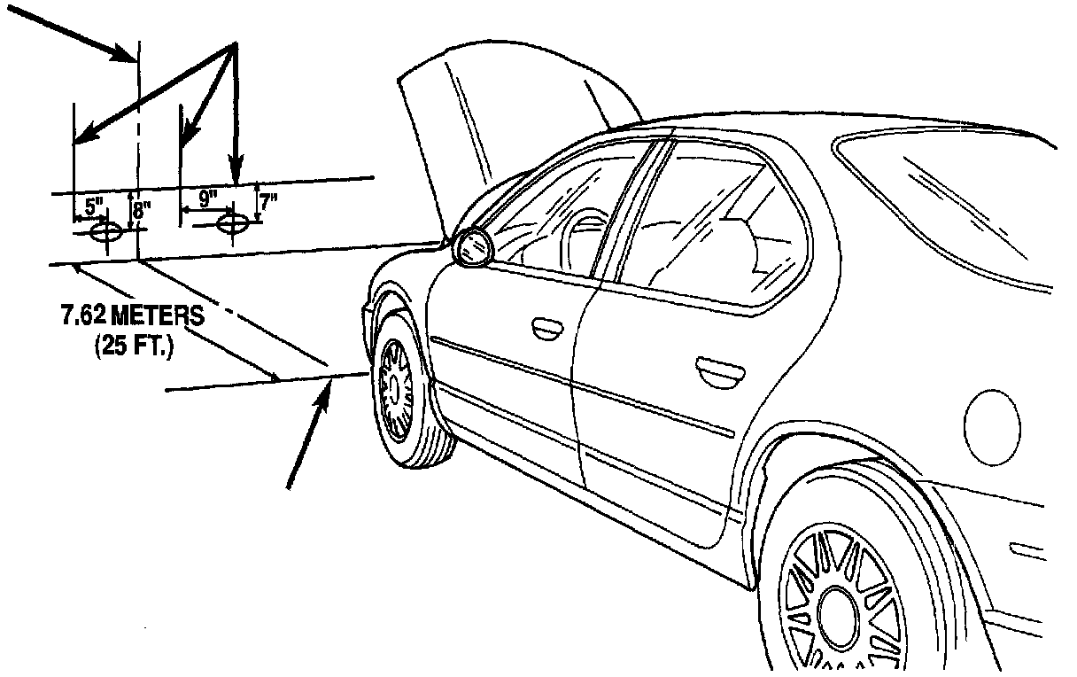 1. Position vehicle on a level surface perpendicular to a flat wall 7.82 meters (25 ft.) away from front of headlamp lens.