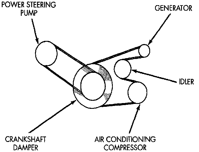 The engines are equipped with 2 accessory drive belts. One belt drives the power steering pump, the other drives the generator and air conditioning.