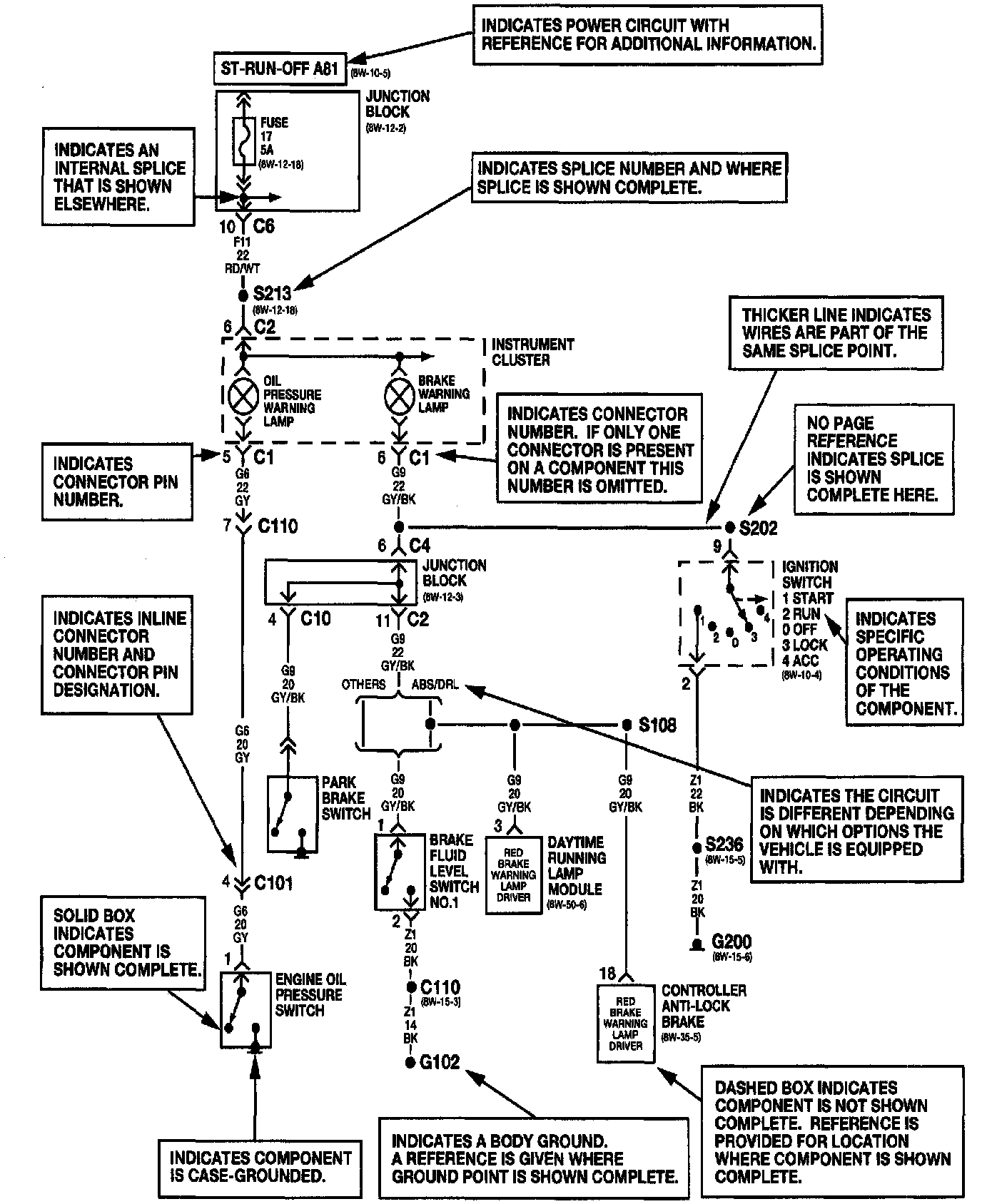 It is important to realize that no attempt is made on the diagrams to represent components and wiring as they appear on the vehicle. For example, a short piece of wire is treated the same as a long one. In addition, switches and other components are shown as simply as possible, with regard to function only.