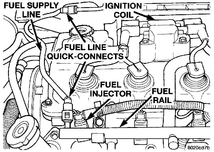 3. Disconnect fuel supply tube from rail. Refer to Quick-Connect Fittings in the Fuel Delivery and Air Induction/Fuel Line Coupler . Service and Repair