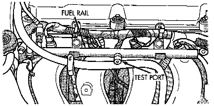 4. Remove the protective cap from the fuel pressure test port on the fuel rail.
