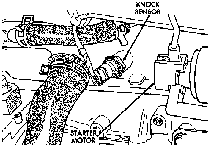 18. Disconnect knock sensor electrical connector and disconnect wiring harness from tab located on the heater tube.