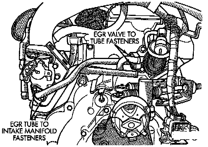 20. Remove EGR tube bolts at the valve and at the intake manifold. Remove tube from engine.