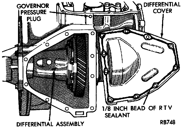 NOTE: Use MOPAR, RTV sealant, or equivalent, when installing differential cover.