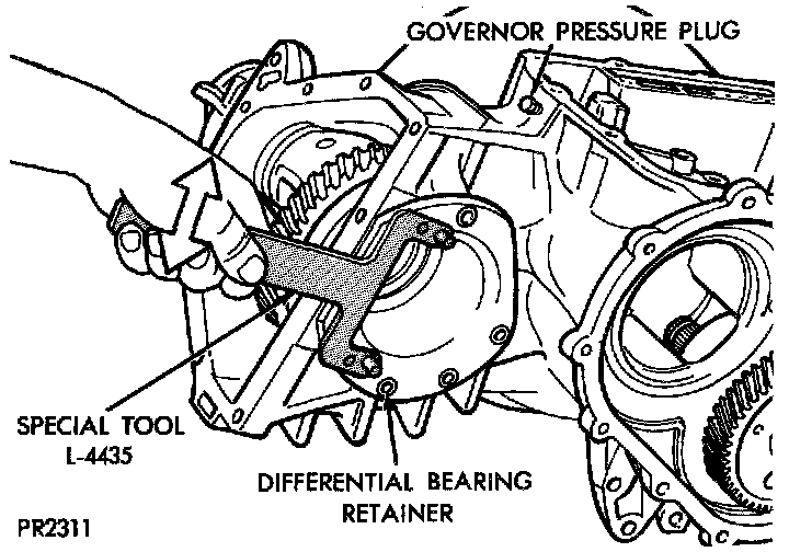 WARNING: HOLD ONTO DIFFERENTIAL ASSEMBLY TO PREVENT IT FROM ROLLING OUT OF HOUSING.