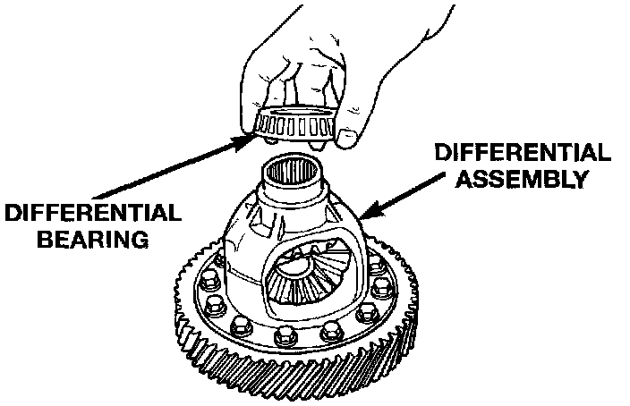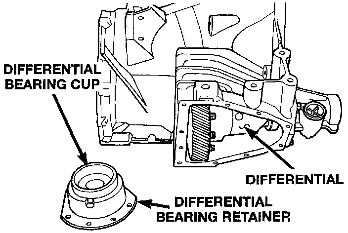 NOTE: The differential is serviced as an assembly. The only parts that are serviceable within the differential are the differential bearing cups and cones. If any other part fails within the differential, you must replace the differential assembly along with the transfer shaft.