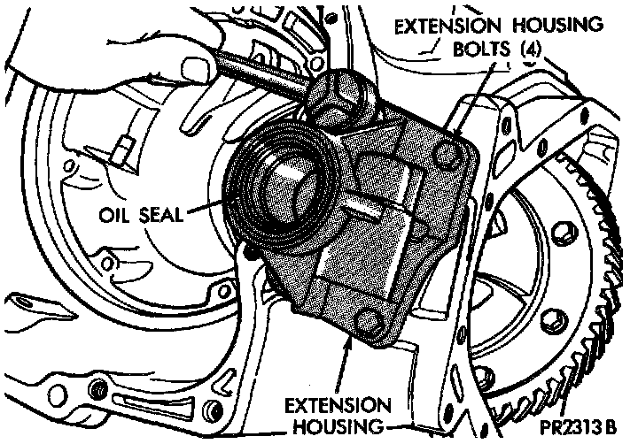 Use MOPAR Silicone Rubber Adhesive Sealant, or equivalent, when installing extension housing.