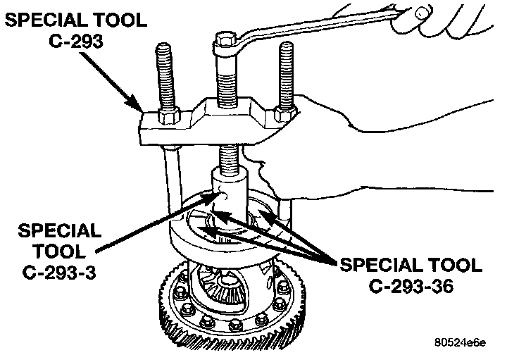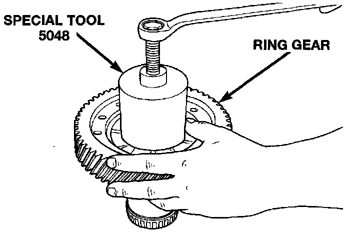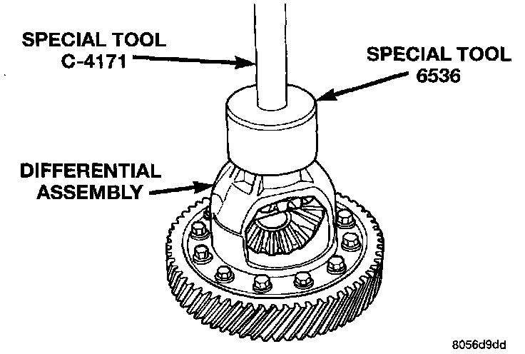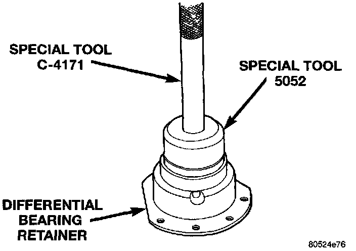 To install the differential bearing cup and cone on the ring gear side, use Special Tool 5052, and Special Tool C-4171.