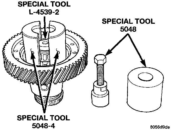 Position Tool 5048 Over Button And Collets At Differential Bearing: