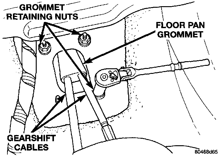 8. Remove floor pan grommet retaining nuts.