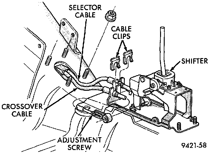 2. Loosen adjusting screw on crossover cable at shifter.