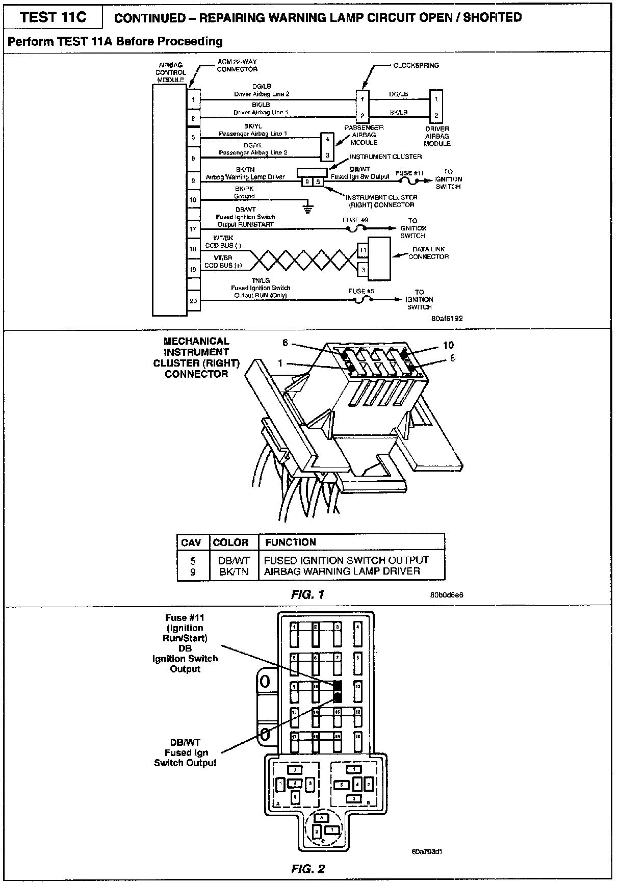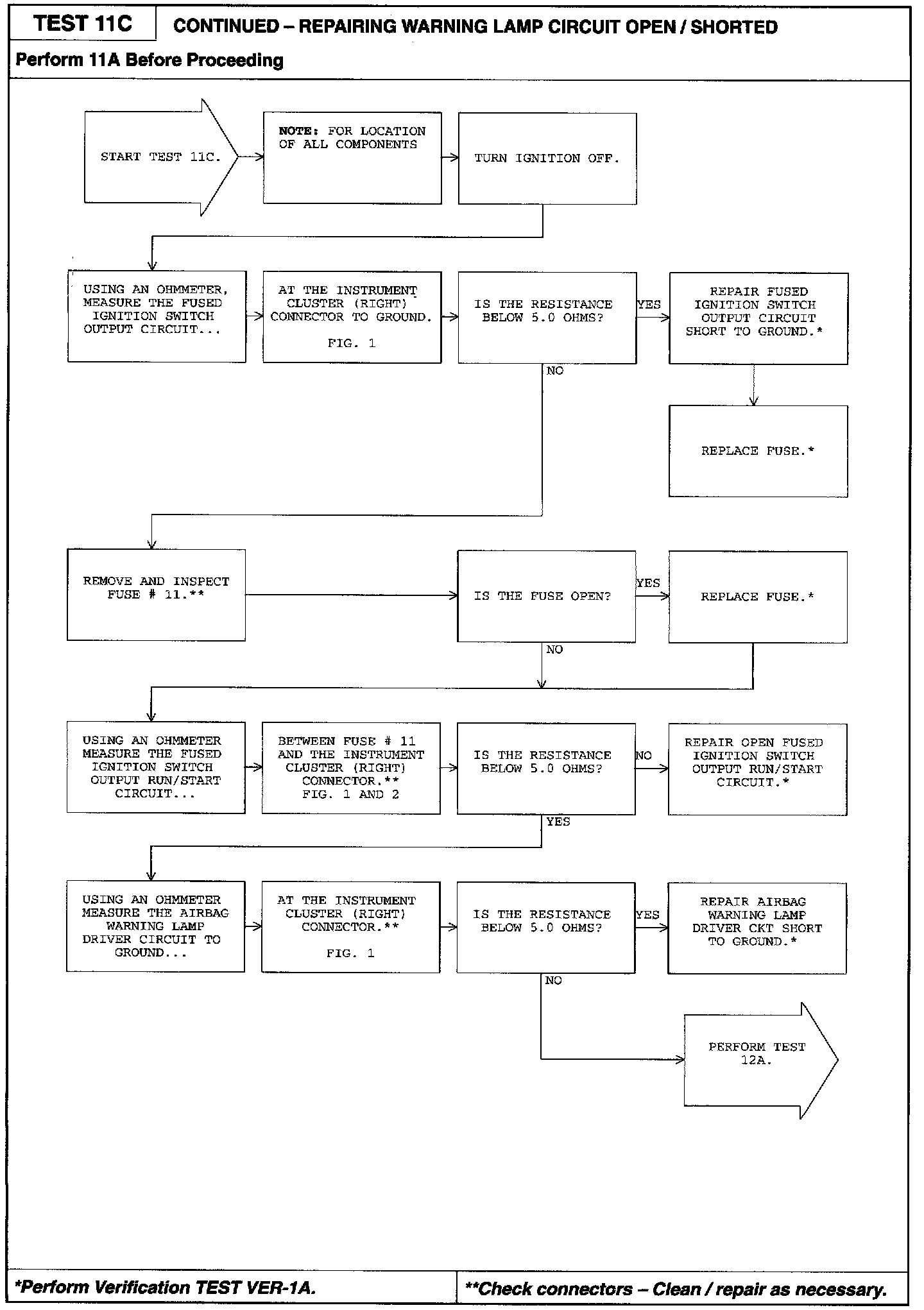 11C Warning Lamp Circuit Open/ Shorted
