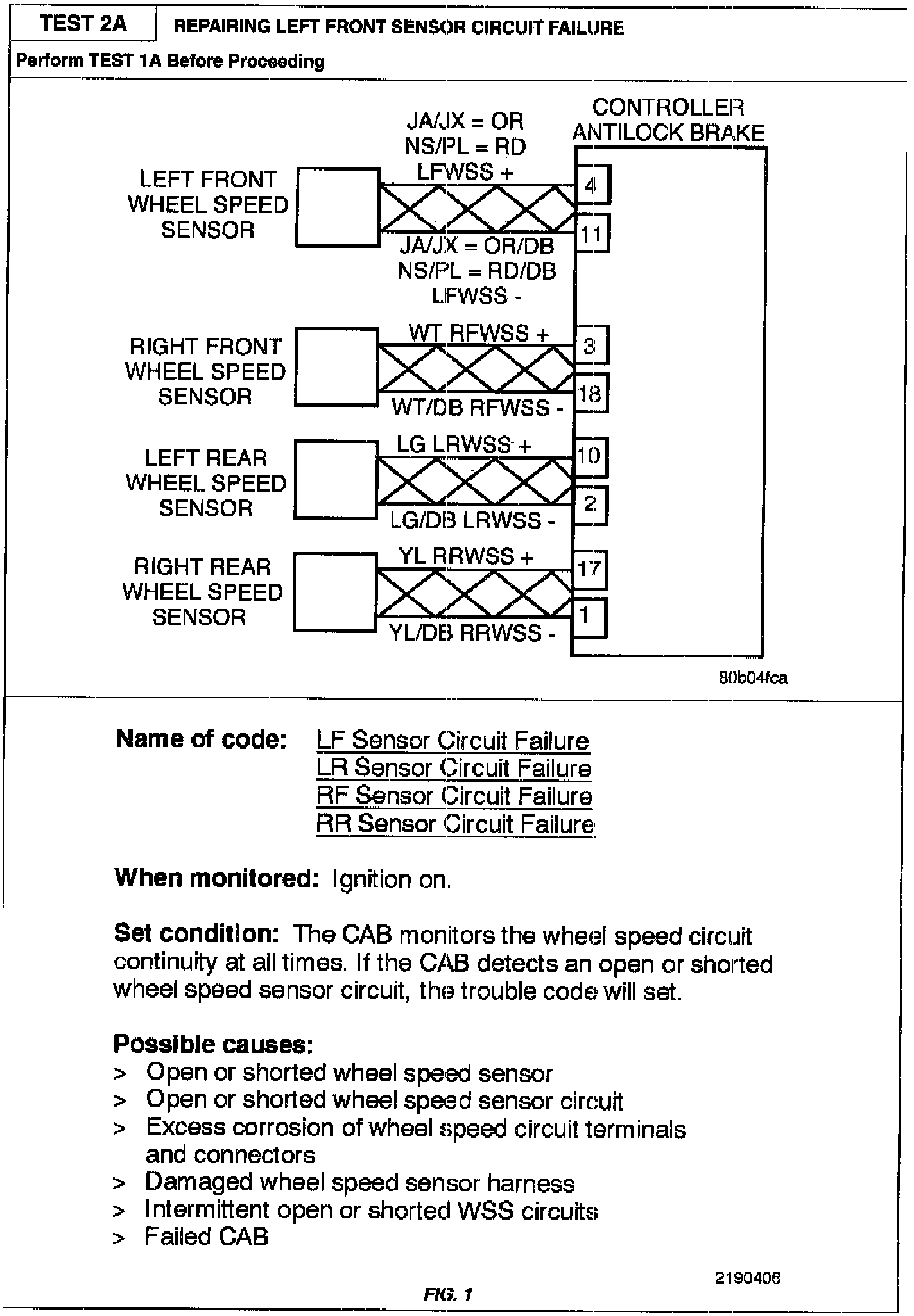 Test 2A - Left Front Sensor Circuit Failure