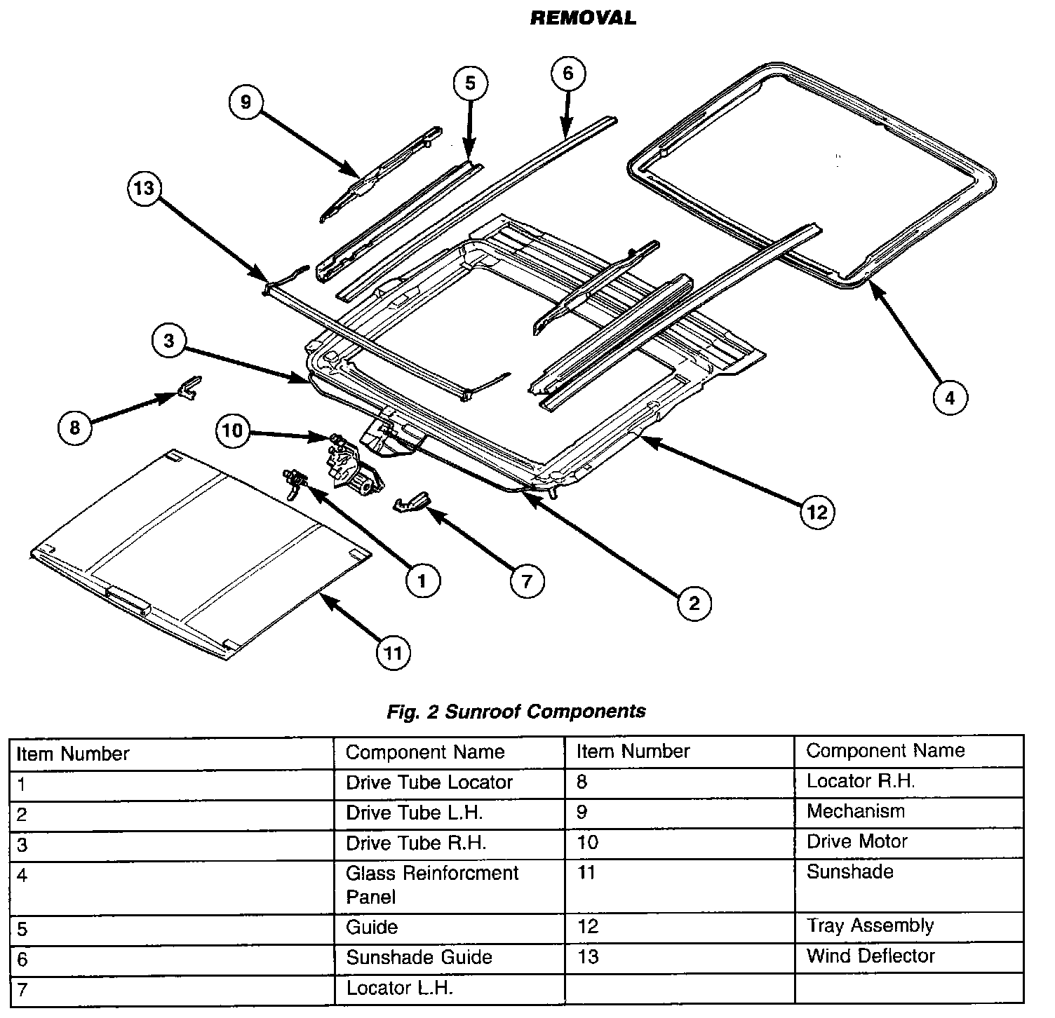 SUNROOF GUIDE AND MECHANISM ASSEMBLYREMOVAL