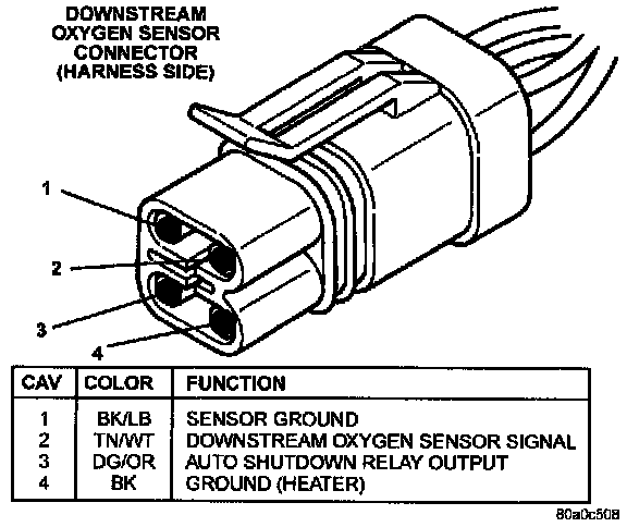 Downstream Oxygen Sensor Connector (Harness Side):