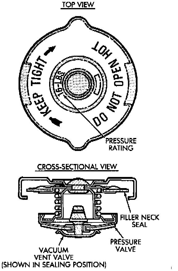 NOTE: A replacement cap must be of the type designed for coolant reserve systems. This design ensures system pressurization.