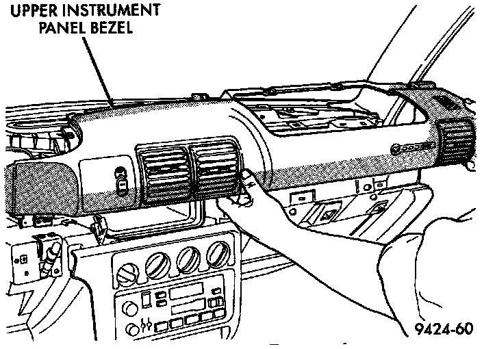 2. Remove right side upper instrument panel bezel. Refer to: "Instrument Panel, Gauges and Warning Indicators : Instrument Panel : Service and Repair" Service and Repair