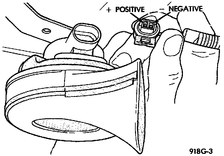 7. If wires test OK and horn does not sound, replace horn.