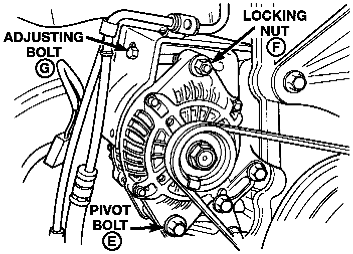 2. Tighten adjusting bolt G. adjust belt tension to specification shown in Belt Tension Chart.
