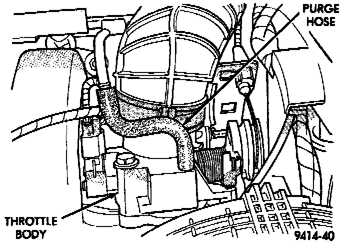 3. Disconnect purge hose from the nipple on the throttle body (Fig. 32).