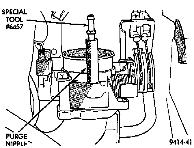 13. Remove Air Metering Orifice 6457 or equivalent. Install purge hose.