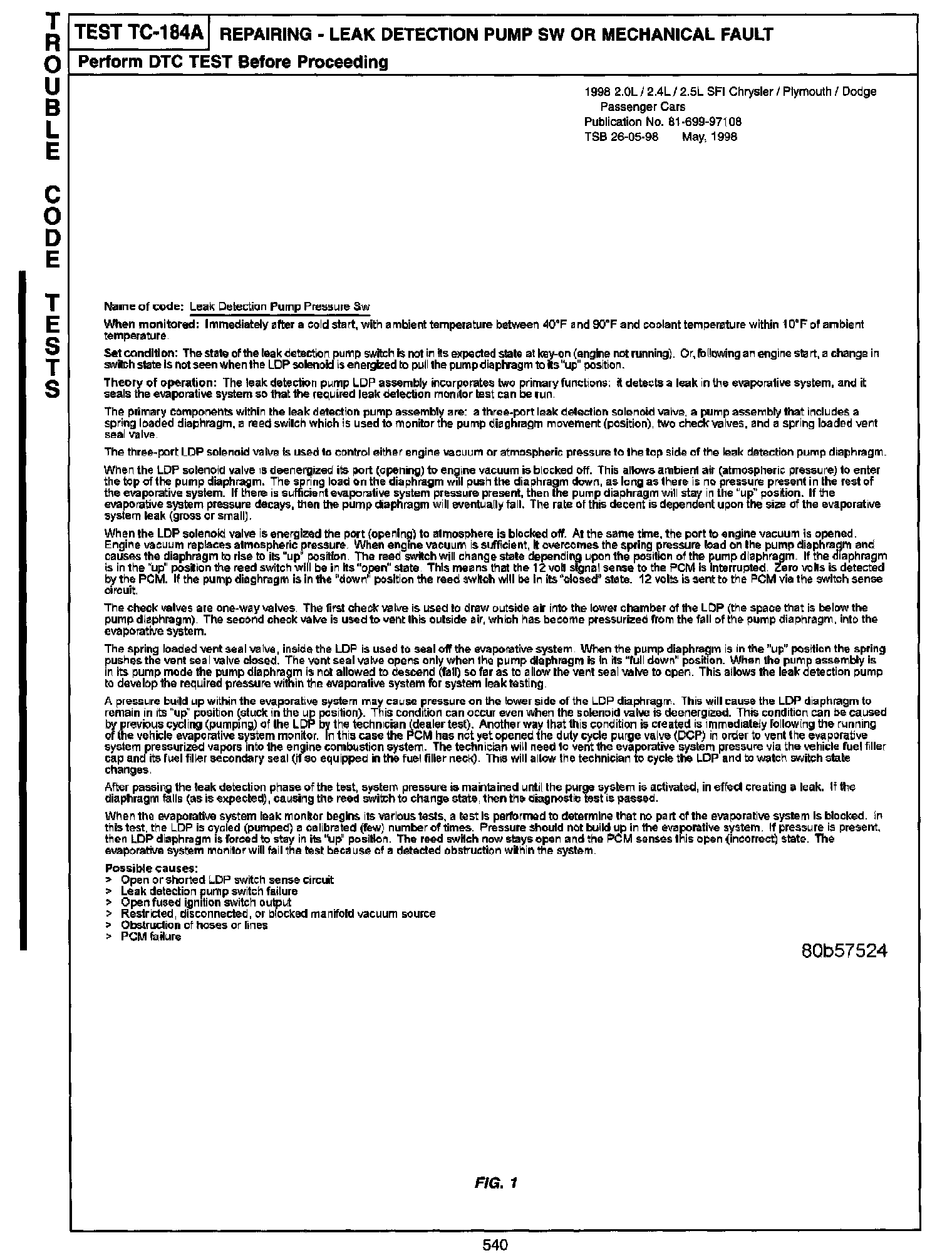 Revisions to the Leak detection pump switch test