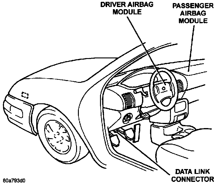 WARNING: NEVER DISASSEMBLE THE DRIVER OR PASSENGER AIRBAG MODULE, THERE ARE NO SERVICEABLE PARTS WITH IN THE MODULES.