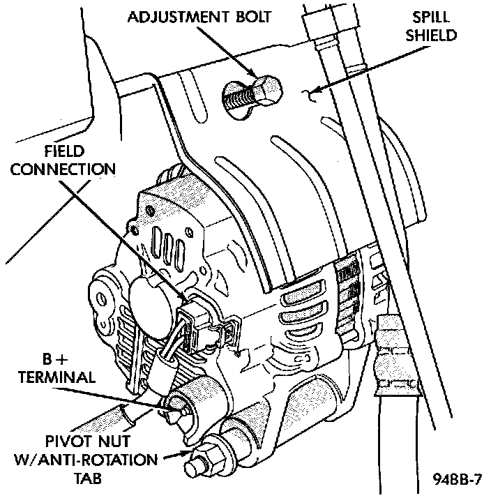 - For installation, reverse above procedures. The generator field connector has a locking tab and will snap when fully installed. Tighten all fasteners to the proper torque. Refer to the Torque Specification chart, Battery/Starter/Charging Systems Diagnostic.