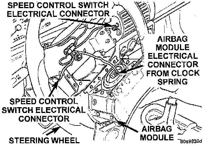 15. Connect the clockspring electrical leads to components such as horn switches and speed control switches located in the steering wheel.
