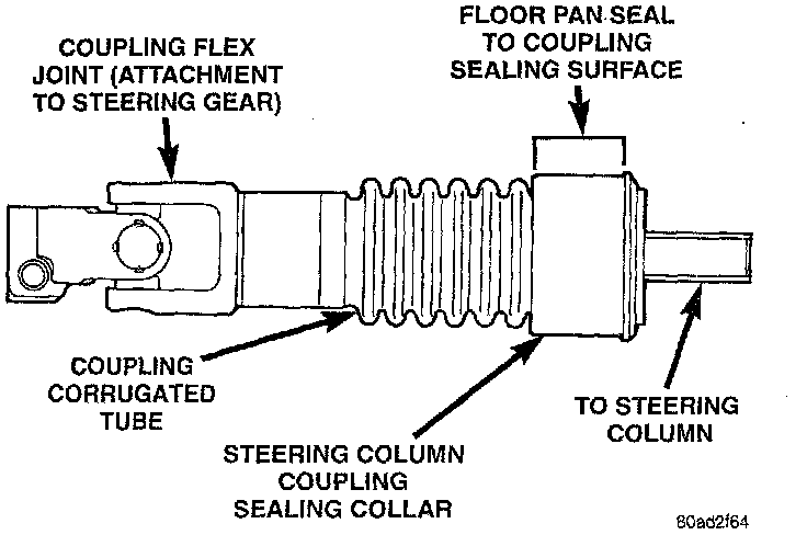 - Inspect the sealing collar on the steering column coupling to ensure the it is not cracked, broken, or otherwise damaged requiring coupling replacement.
