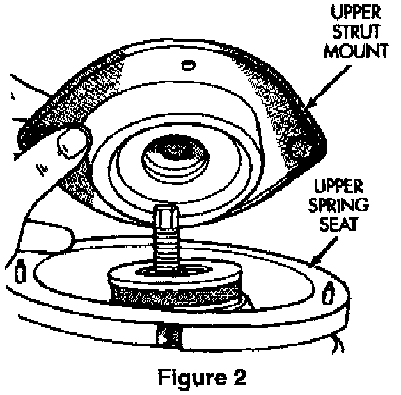 **6. Replace the upper strut mount by following the procedures in the 1998 Neon Service Manual (Publication No. 81-270-8025), Removal/Installation, pages 2-16 to 2-17, and Assembly/Disassembly procedures 1 thru 5 on pages 2-30 to 2-31 (Figure 2). The torque for the new upper strut mount nuts is 61 Nm (45 ft.lbs).**