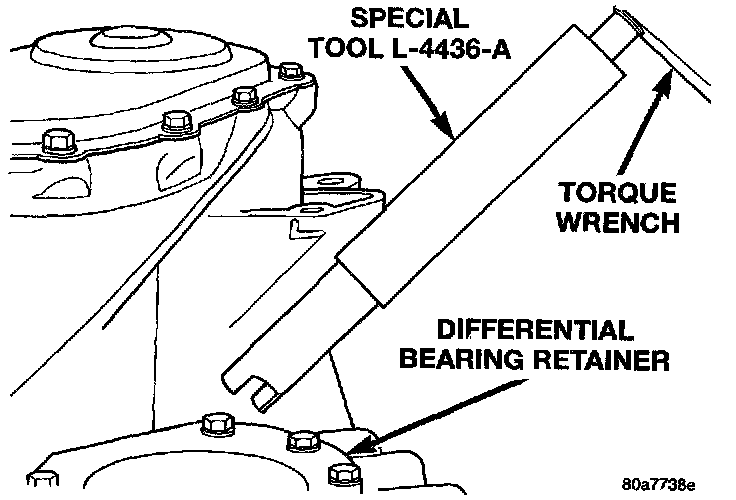 7. Using Tool L-4436A and an inch lb. torque wrench, recheck the turning torque of the differential. The turning torque should be between 5 and 18 inch lbs..