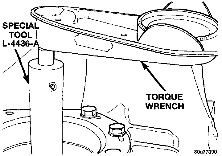 4. Using Tool L-4436A and an inch lb. torque wrench, check the turning torque of the differential. The turning torque should be between 5 and 18 inch lbs..