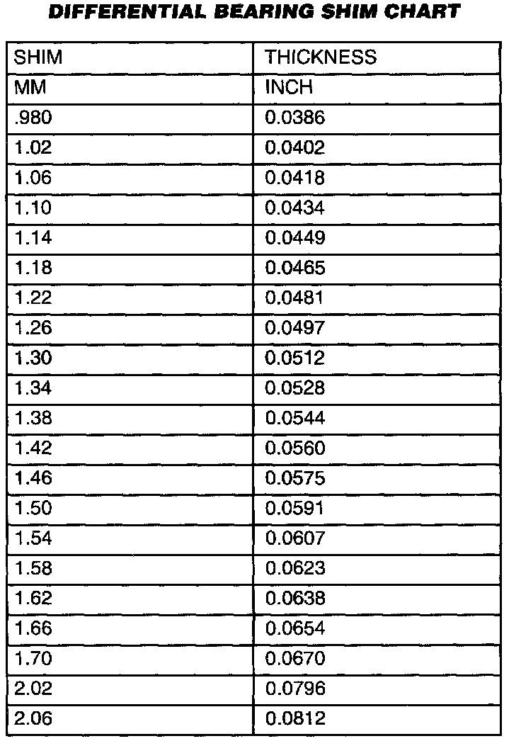 Differential Bearing Shim Chart: