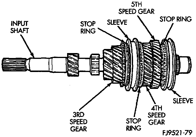 The input shaft incorporates the 3rd, 4th, and 5th speed gears and synchronizers on the assembly.