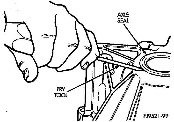 1. Insert a flat-blade pry tool at outer edge of axle shaft seal.