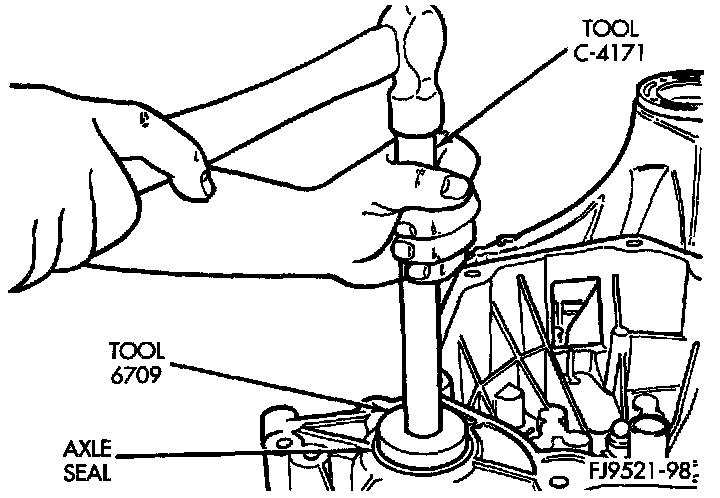 3. Install axle seal on tool #6709 with C-4171 and insert into axle shaft seal bore.
