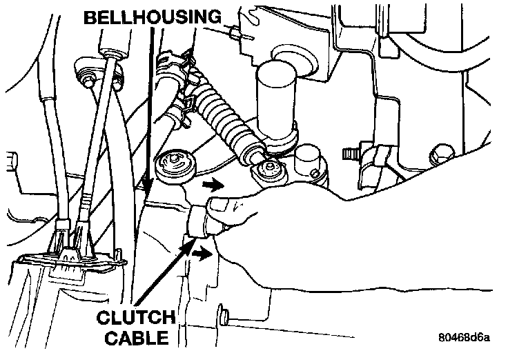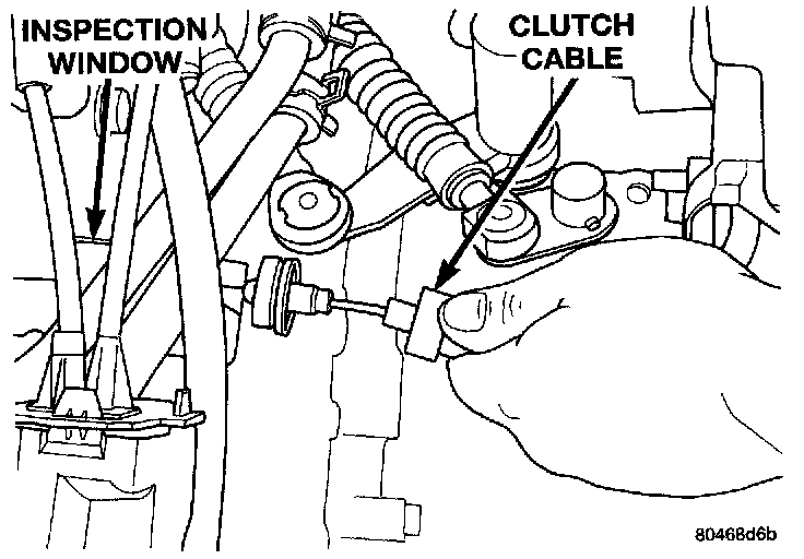 7. Remove clutch housing vent cap, exposing the clutch cable end and clutch release lever. Then remove clutch cable from transaxle bellhousing.