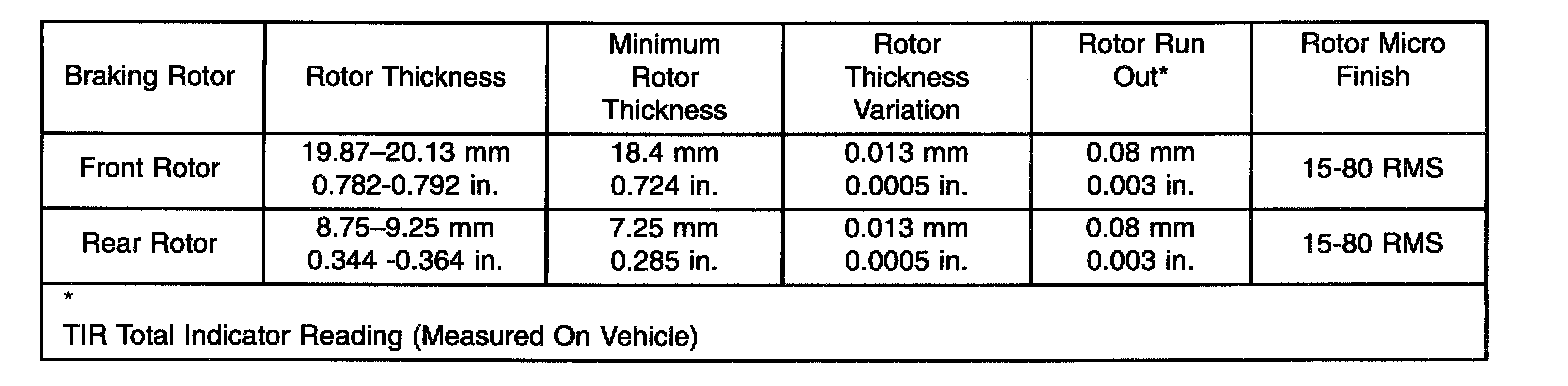 NOTE: All rotors have markings for minimum allowable thickness cast on an un-machined surface of the rotor.