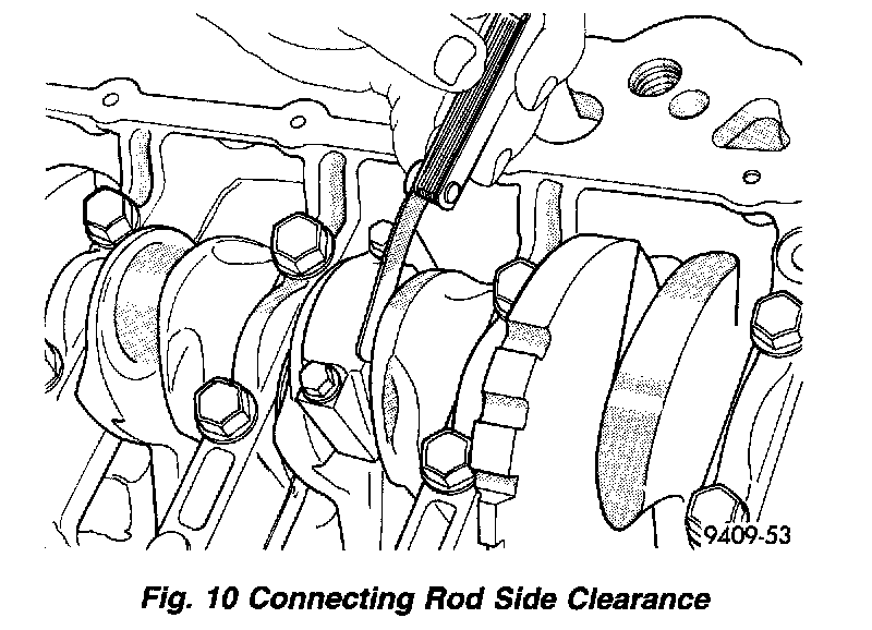 5. Using a feeler gauge, check connecting rod side clearance (Fig. 10). Refer to Connecting Rod Specification Chart for specifications.