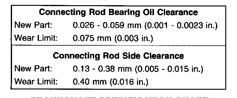CONNECTING ROD SPECIFICATION CHART
