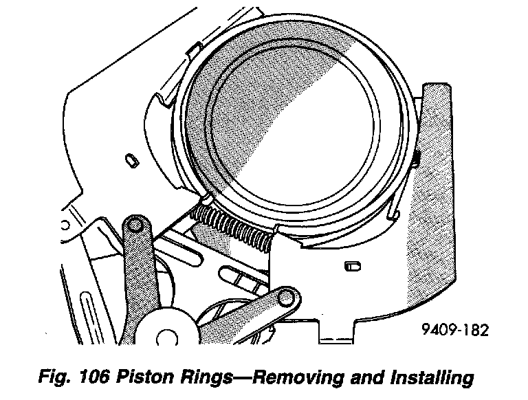 2. Using a suitable ring expander, remove upper and intermediate piston rings (Fig. 106).