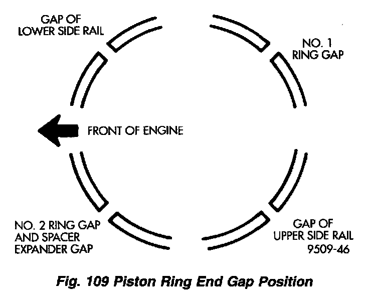 4. Position piston ring end gaps as shown (Fig. 109).